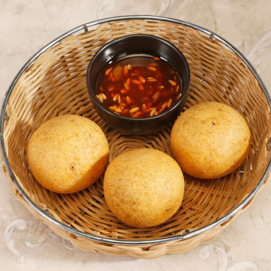 Deep-fried potato dumplings coated in a gram flour batter, served with chutneys.