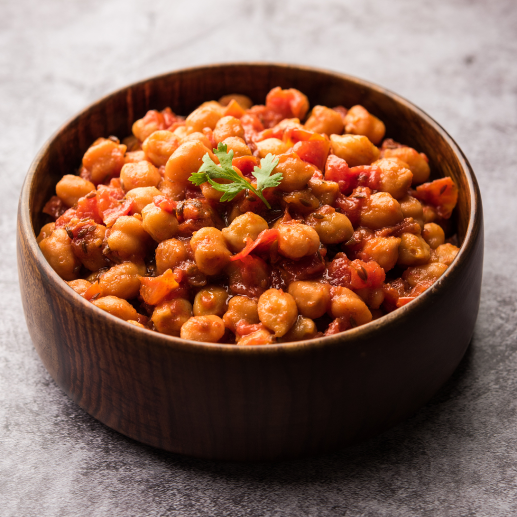 A popular North Indian dish made with chickpeas cooked in a spicy and tangy tomato-based gravy, often seasoned with a blend of aromatic spices and served with roti, naan, or rice.