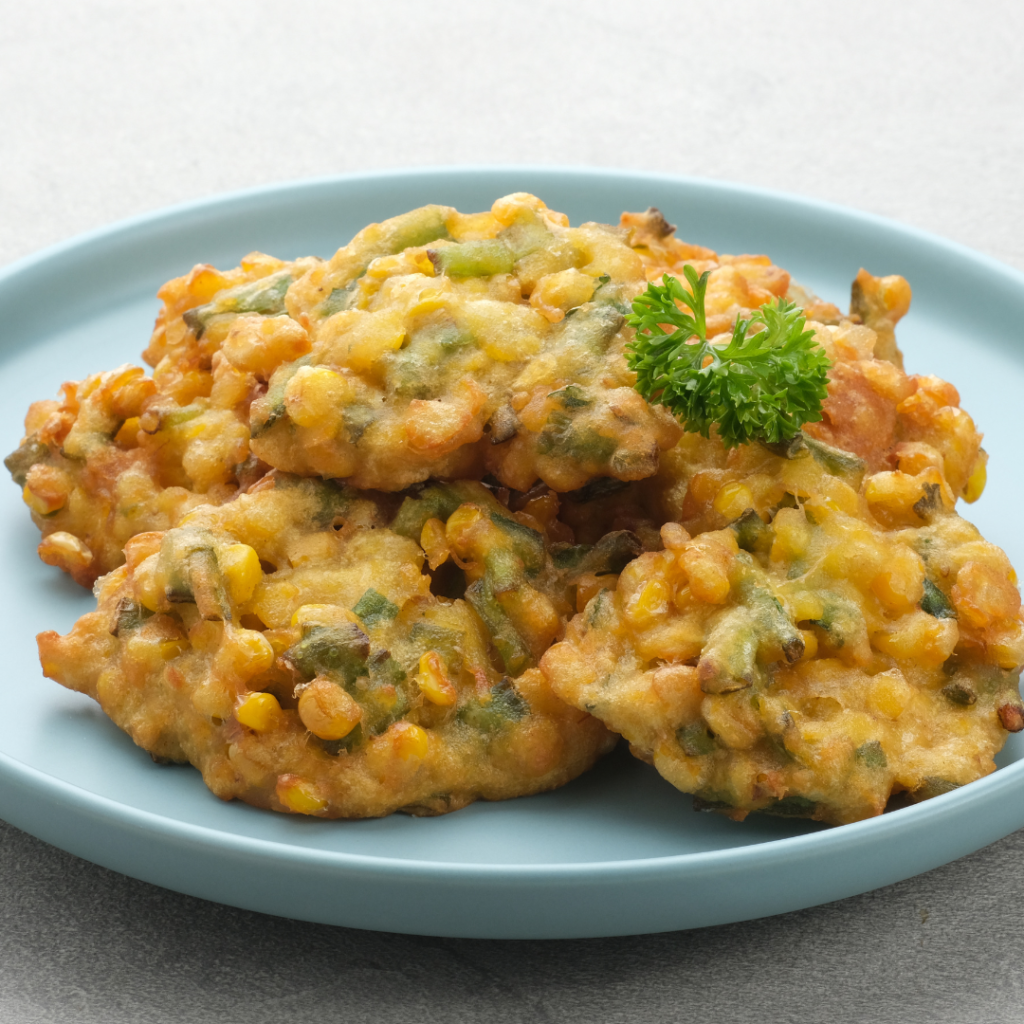 Batter-coated corn kernels deep-fried until golden and crispy.