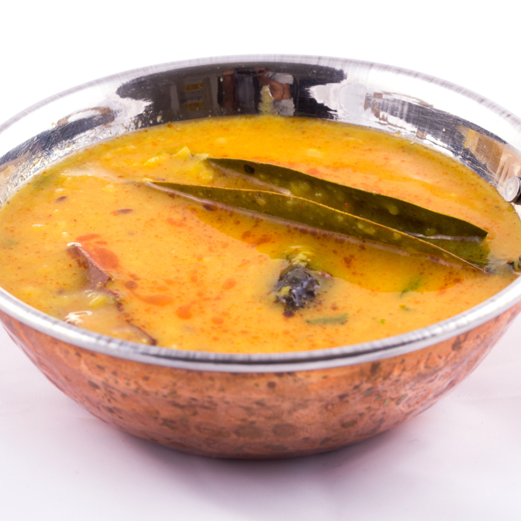 A simple and delicious dish made with lentils (usually yellow or red) tempered with ghee, cumin seeds, onions, tomatoes, and spices, resulting in a well-seasoned and comforting lentil preparation.