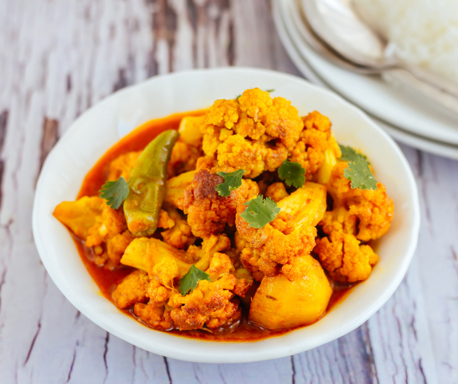 A classic combination of potatoes and cauliflower cooked with aromatic spices and herbs, resulting in a comforting and delicious dish.