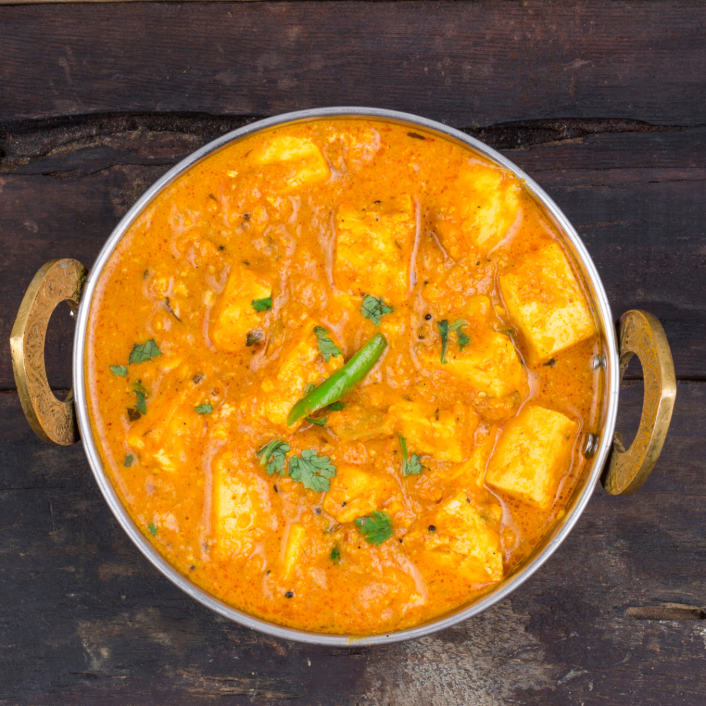 Paneer cubes cooked in a rich and creamy tomato-based gravy, flavored with a combination of spices, onions, and capsicum. It is a flavorful and indulgent dish often served with naan or jeera rice.