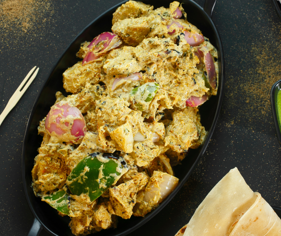A creamy and mildly spiced paneer dish with a hint of smokiness. The paneer is marinated in a mixture of yogurt, cream, aromatic spices, and grilled to perfection. It is often served as an appetizer or side dish.