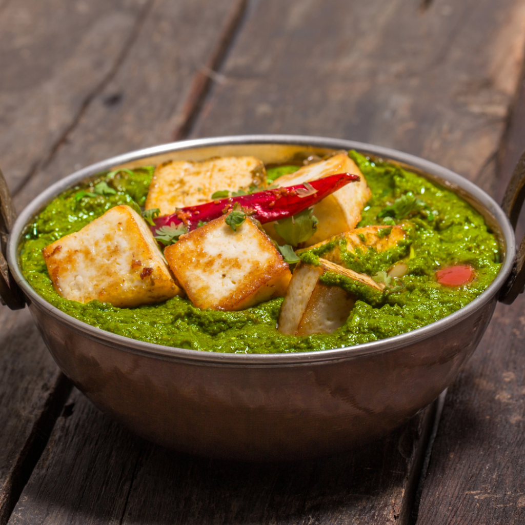 A popular North Indian dish made with paneer (Indian cottage cheese) cooked in a creamy spinach gravy, offering a delightful combination of flavors and textures.