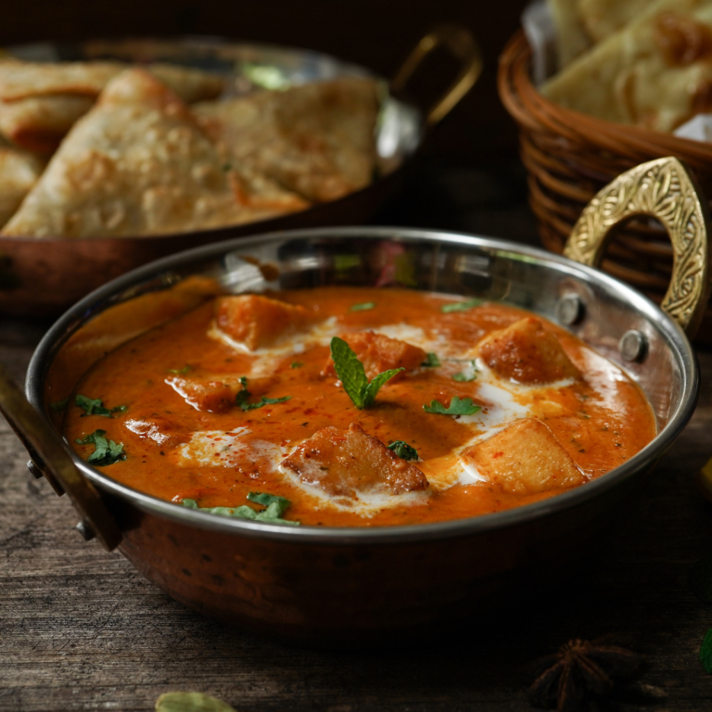 Paneer tikka (marinated paneer cubes) cooked in a rich and creamy tomato-based gravy, flavored with a blend of spices and finished with cream. It is a popular and indulgent dish often enjoyed with naan or rice.