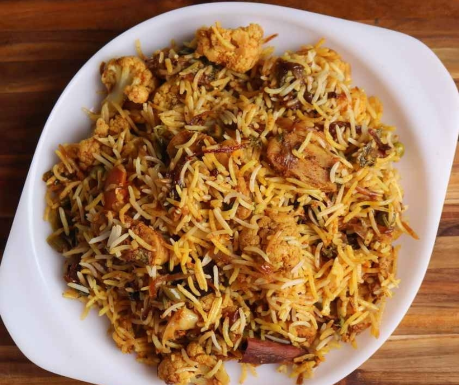 A fragrant rice dish cooked with basmati rice, mixed vegetables, and aromatic spices. It is a wholesome option that combines fiber-rich veggies with the goodness of rice.