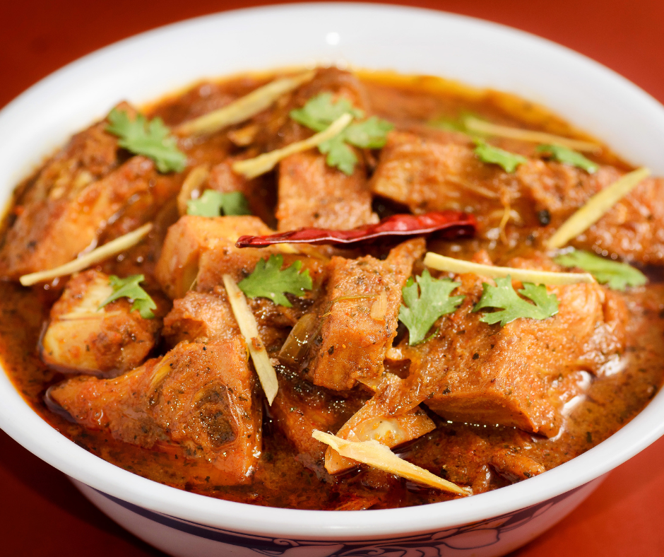 A classic Punjabi dish made with kidney beans cooked in a thick and flavorful tomato-based gravy, often infused with spices like cumin, coriander, and garam masala, served with rice or roti.