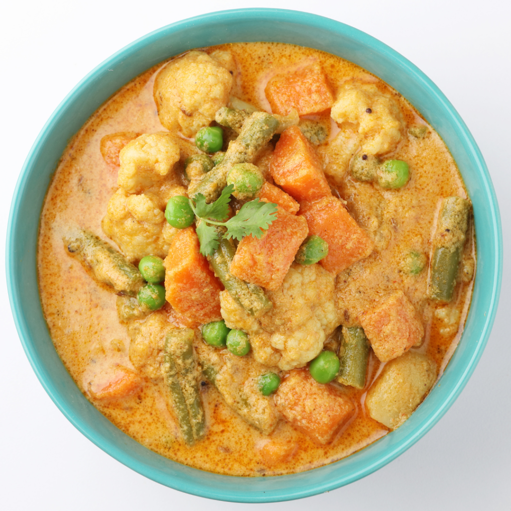 A flavorful and aromatic dish made with a medley of mixed vegetables cooked in a creamy and mildly spiced curry sauce.