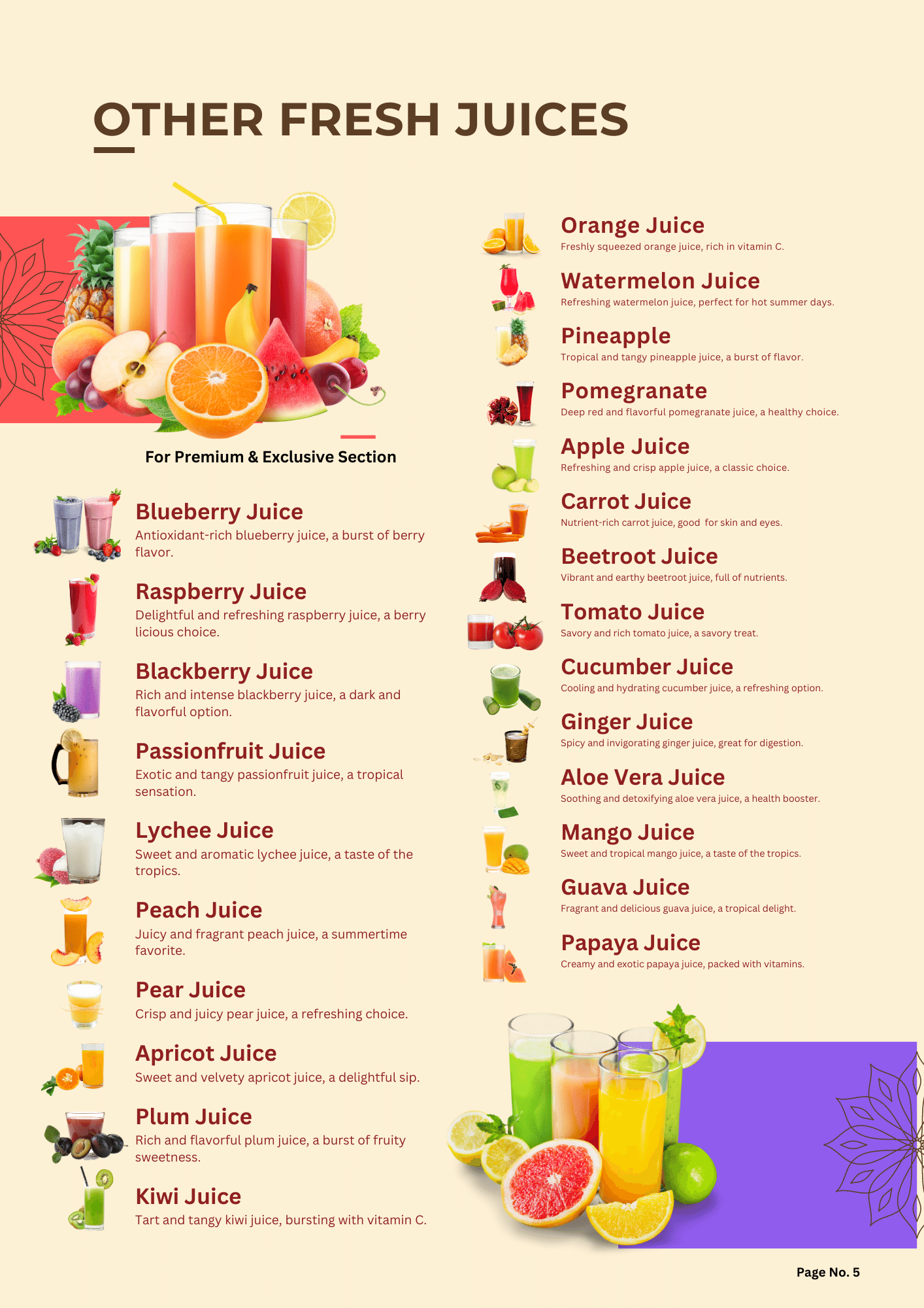 A sweet and tangy raita made with a combination of diced fruits like pineapple, apple, pomegranate, and grapes, mixed with yogurt and flavored with honey or sugar. It provides a refreshing and fruity twist to the meal.